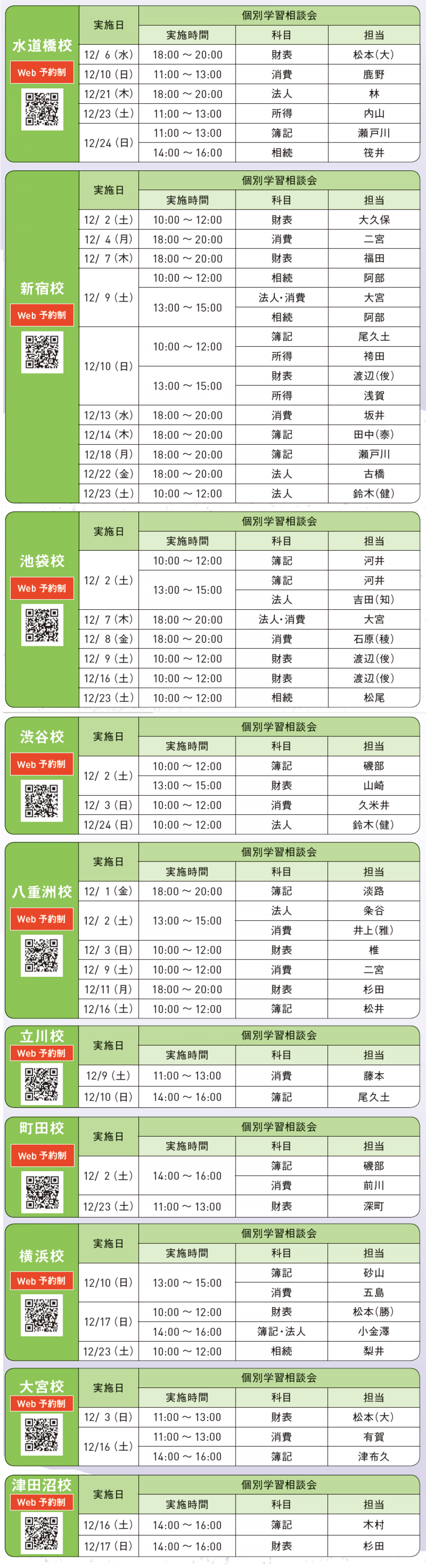 水道橋校・新宿校・池袋校・渋谷校・八重洲校・横浜校・大宮校・津田沼校