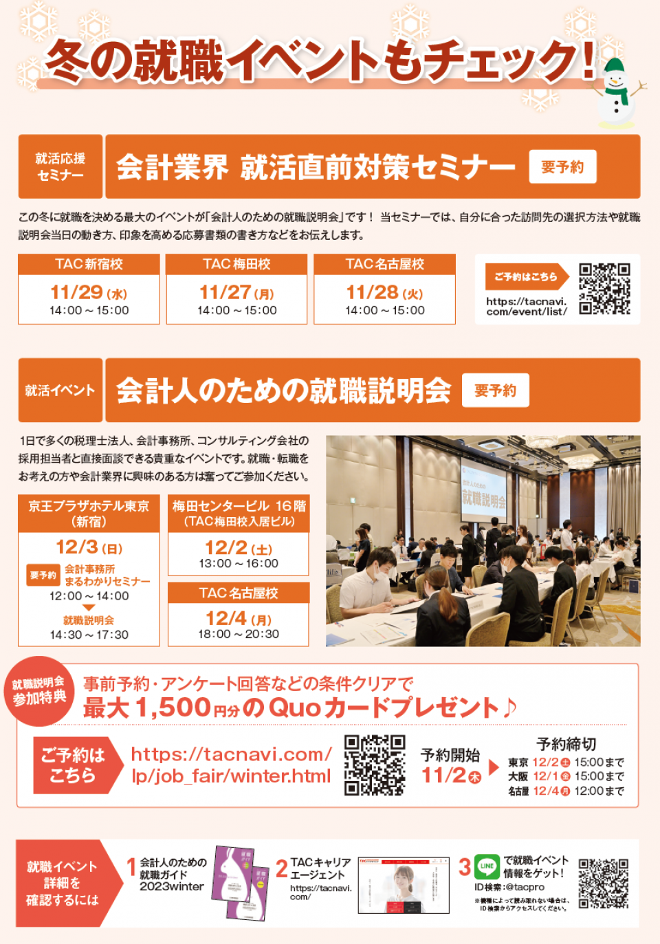 TACプロフェッションバンク主催!冬の就職イベントのご紹介