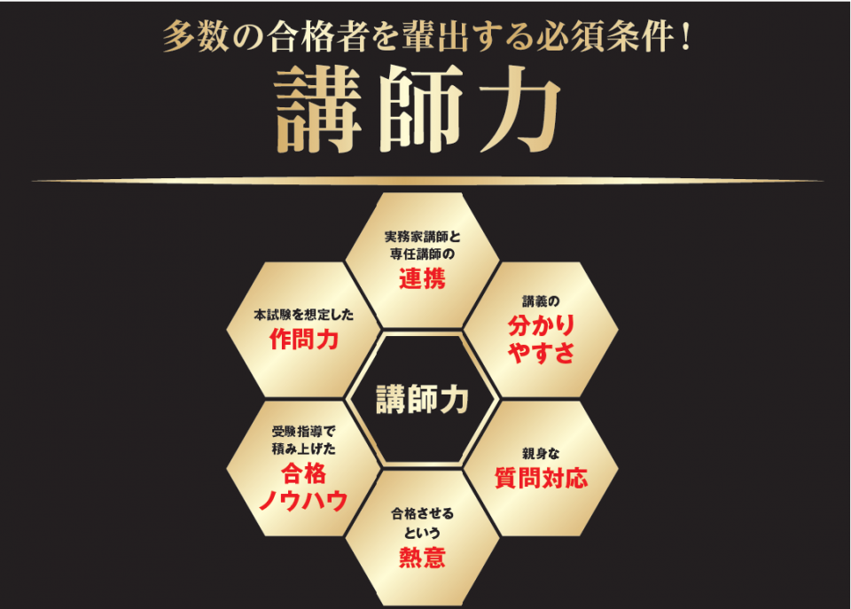 闇雲に努力しても合格には近づきません。合格するためには、効果的かつ効率的な学習を行う必要があります。そのためには、学習内容の理解を促進させる分かりやすい講義はもちろん、解法テクニックのレクチャーや本試験を想定した良問の作成、さらには親身な質問対応など、講師の高い指導力が不可欠です。つまり、講師力こそTACの強み(講義・教材・問題作成)の要なのです。