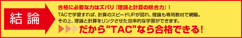 TACなら計算スピードU Pと理論知識の網羅化を実現!その上、理論と計算をリンクさせた効率学習で合格を勝ち取れる!!