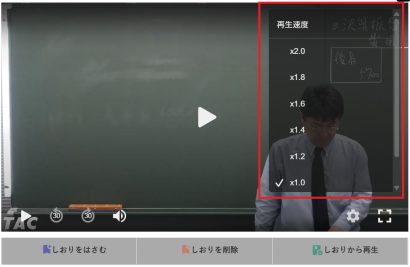 再生速度(0.8倍~2.0倍までの7段階)の調整や分割受講ができるので、映像講義ならではの利便性で学習が捗ります。