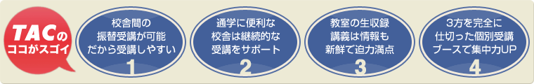 お近くのTAC各校ビデオブースで教室収録した映像講義をご自身の都合に合わせてご覧いただけます。