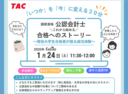 【公認会計士】年末年始特別イベント 働きながらでも会計士試験に受かる! 実体験を講師が語る、タイパ最強学習法