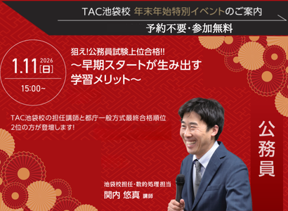 【公務員(地方上級・国家一般職)】年末年始特別イベント TAC式一発合格セミナー(1.5年本科生Ver.)