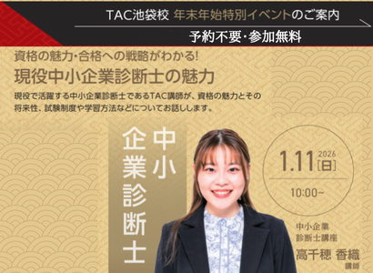 "現役で活躍する中小企業診断士であるTAC講師が、資格の魅力とその将来性、試験制度や学習方法などについてお話しします!"