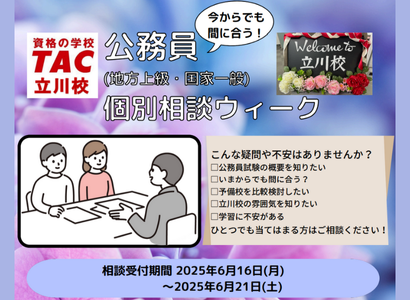 【公務員(地方上級・国家一般職)】立川校独自のサービスでライバルに差をつけろ!先取り学習セミナー