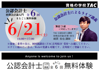 公認会計士試験の第一関門である、短答式試験の科目を一度に体験できます!全体のイメージを掴める良い機会ですので、ぜひご参加ください!簿記の学習経験の有無は問いません!