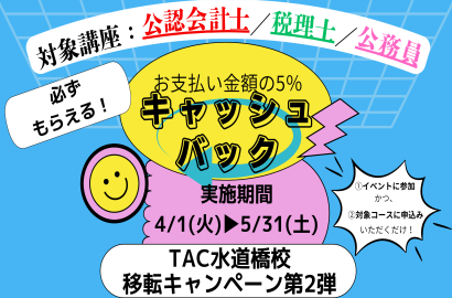 | 20260212190000 2/12(木) 19:00 | 公認会計士 | セミナー | 公認会計士まるわかりセミナー 試験制度から受講方法まで会計士とTACのことがまるわかりのセミナーです。終了後は皆様のご質問・ご相談も承ります。 <セミナー約50分Q&A付> |