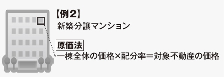 階層の違いや、位置の違いといった難しいポイントは今回は抜きにして、この部屋の専有面積が残りのマンション全部の部屋の占有面積の合計に対して、どれくらいの割合かという占有面積割合を出す。それだけなら、マンションの募集パンフレットにも書かれていますので、全占有面積の合計に対する、対象になっている部屋の占有面積の割合を掛ければ出すことができ、これがひとつの判断基準になります。異常に高いとなれば、適正価格ではないということになります。これが原価法という考え方です。
